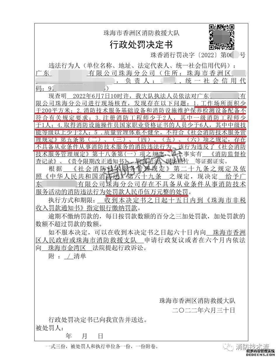 广东珠海市香洲区消防救援大队对当地一家消防技术服务机构分公司进行现场核查时,发现以下问题: